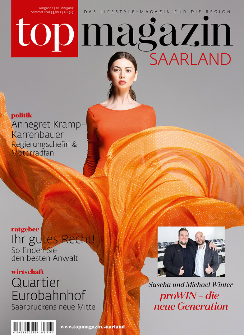 TOP MAGAZIN SAARLAND – Das bedeutet: 35 Jahre Lifestyle, Wirtschaft und Society-Themen auf höchstem Niveau. TOP MAGAZIN SAARLAND ist ein journalistisch fundiertes und optisch aufwändig gestaltetes Hochglanz-Magazin, das in der Region seinesgleichen sucht. TOP MAGAZIN SAARLAND erreicht zielgenau die TOP-Consumer, Meinungsmacher und Entscheider im Raum Saar-Lor-Lux.